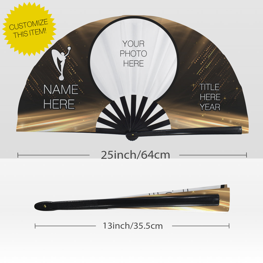 Get a custom fan with your name and title. This folding fan combines durability with endless creativity, featuring a smooth plastic frame and high-density Oxford fabric