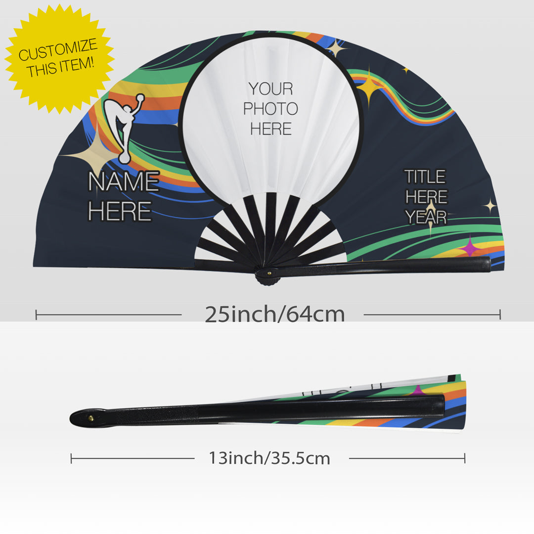 Get a custom fan with your name and title. This folding fan combines durability with endless creativity, featuring a smooth plastic frame and high-density Oxford fabric