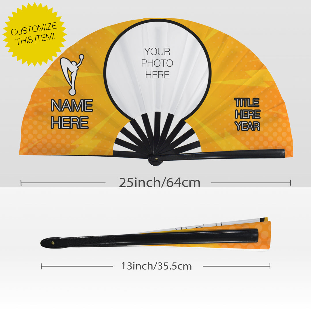 Get a custom fan with your name and title. This folding fan combines durability with endless creativity, featuring a smooth plastic frame and high-density Oxford fabric