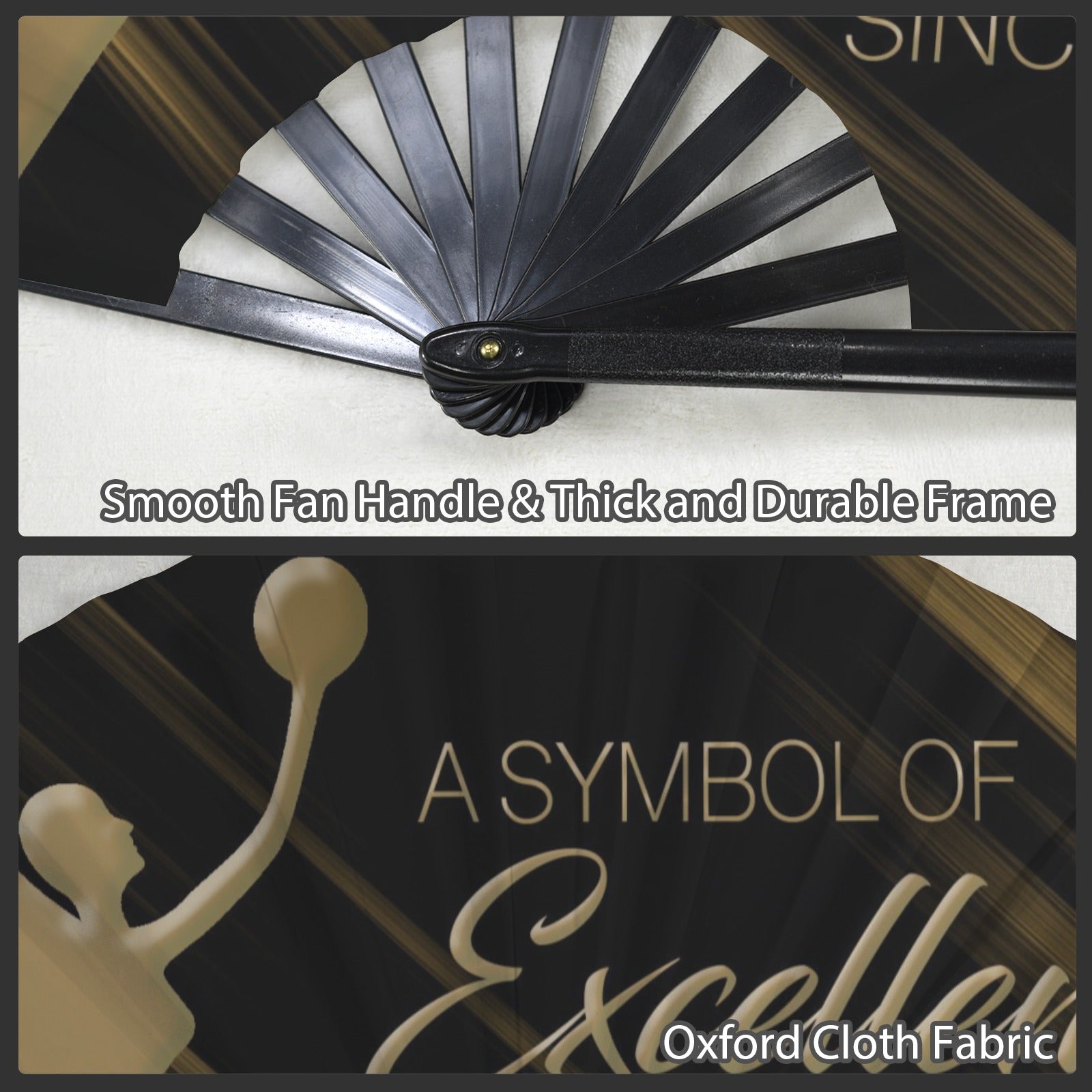 This folding fan combines durability with endless creativity, featuring a smooth plastic frame and high-density Oxford fabric